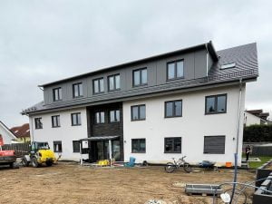 Bei einem Wohnbauprojekt in Deutschland wurden hellgraue und weiße 8 mm HPL-Platten als Wandverkleidung verwendet.
