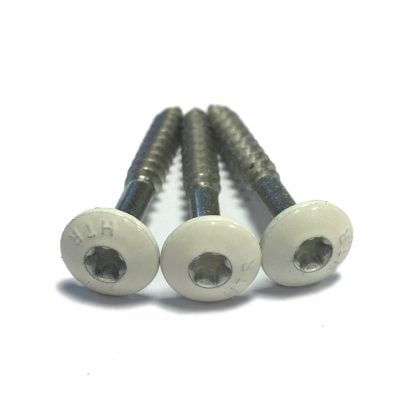 HPL Schrauben cremeweiß RAL 9001: Unsere HPL-Schrauben sind in cremeweißer Farbe RAL 9001 (ca.) erhältlich. Die Edelstahlschrauben haben eine spezielle Beschichtung gegen Korrosion, UV-Strahlung und Kratzer. Sie werden pro 25 Stück verkauft und mit einem speziell für Ihren Bohrschrauber angefertigten Bit geliefert.