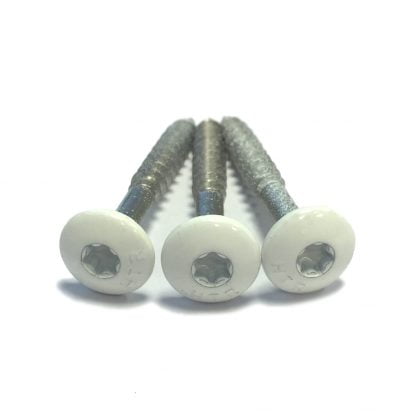 HPL Schrauben weiß RAL 9010 / 9016: Unsere HPL-Schrauben haben einen weißen Farbton, der zwischen RAL 9010 (Grauweiß) und RAL 9016 (Verkehrsweiß) liegt. Die Edelstahlschrauben haben eine spezielle Beschichtung gegen Korrosion, UV-Strahlung und Kratzer. Sie werden pro 25 Stück verkauft und mit einem speziell für Ihren Bohrschrauber angefertigten Bit geliefert.